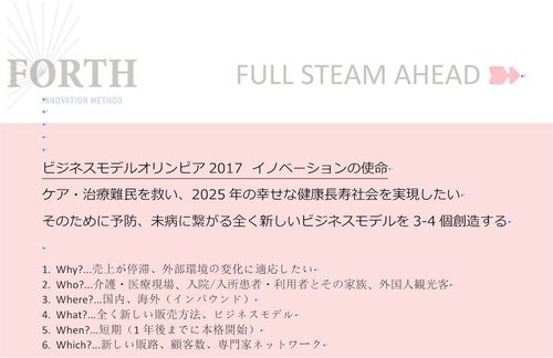 医療法人の組織活性化にも効く!異業種共創型で、ヘルスケア分野にオープンイノベーションを起こしてみている [Sat., 11 Feb, 2017] イノベーションのオリンピックをコンセプトに始まった「ビジネスモデルオリンピア2017」。第3回、当方がオープニングを務め…